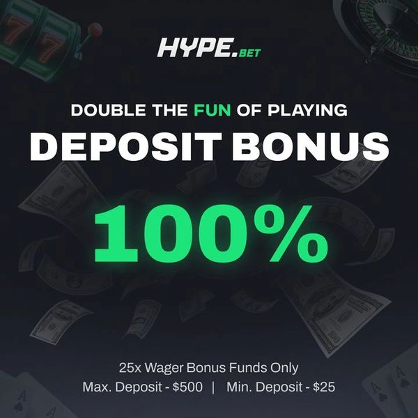 Deposit and Hype.bet doubles it (up to $500) with 25x wager – on your deposit only!