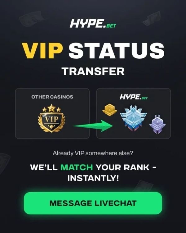 If you have VIP-status on other casinos; get in contact with the support and they will immediately match it at Hype.Bet as well